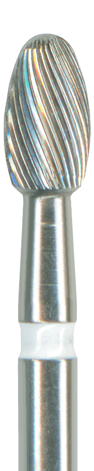 H379-023UF-FG Твердосплавный финир NTI, форма олива, белое кольцо, ультра-мелкое