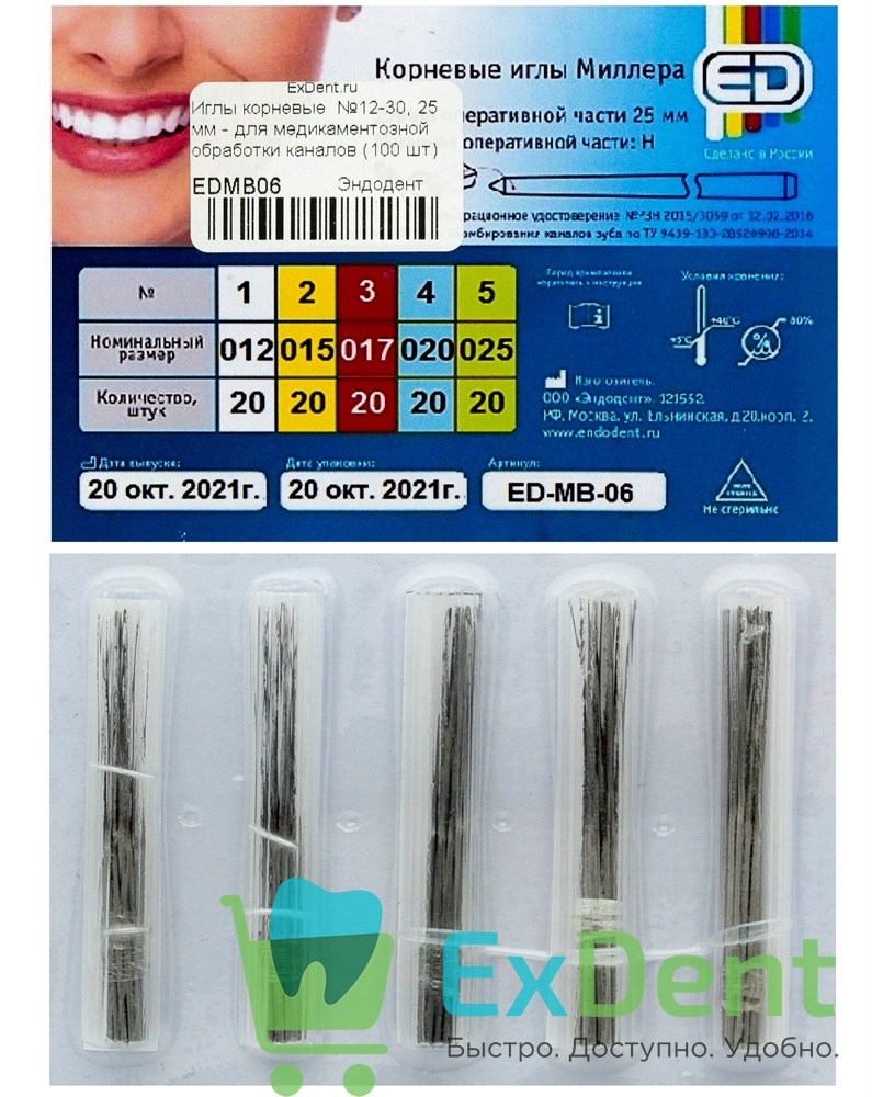 Купить Иглы корневые №12-25, 25 мм - для медикаментозной обработки каналов (100 шт) произведенный компанией Эндодент вы можете в ExDent.ru по цене 0руб.