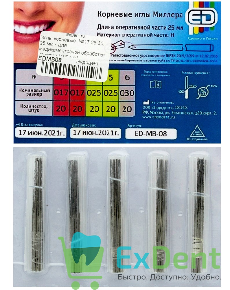 Купить Иглы корневые №17.25.30, 25 мм - для медикаментозной обработки каналов (100 шт) произведенный компанией Эндодент вы можете в ExDent.ru по цене 0руб.