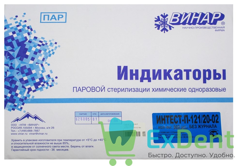 Купить Индикатор паровой стерилизации Интест-П-121/20-02 без журнала (500 шт) произведенный компанией вы можете в ExDent.ru по цене 0руб.