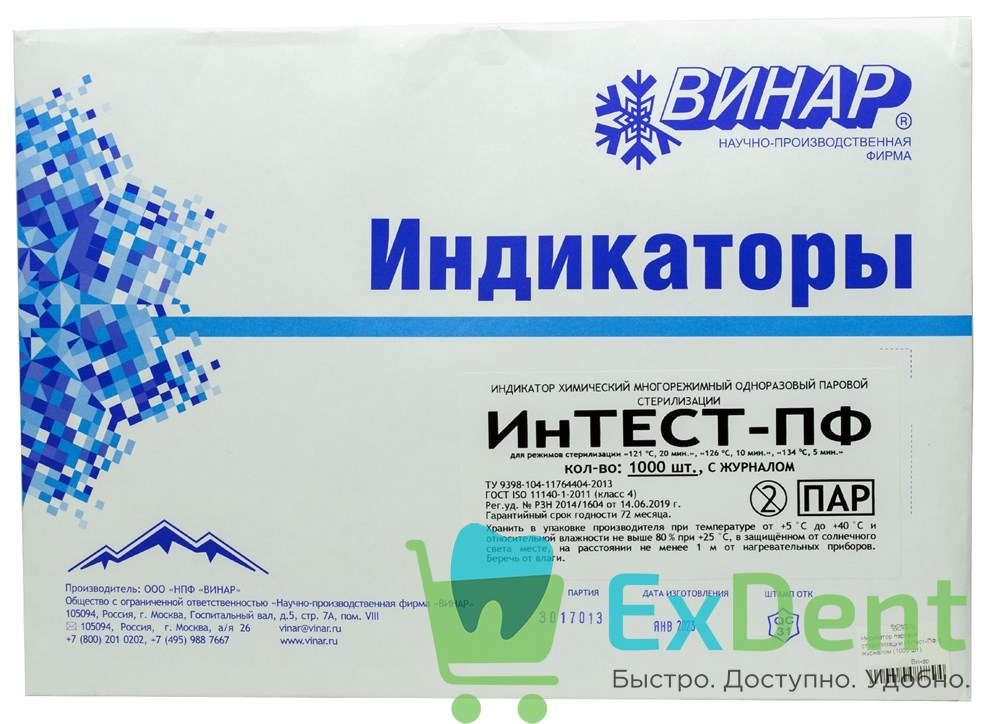 Купить Индикатор паровой стерилизации Интест-ПФ с журналом 121/20, 126/10, 134/5 (1000 шт) произведенный компанией Винар вы можете в ExDent.ru по цене 1 570руб.
