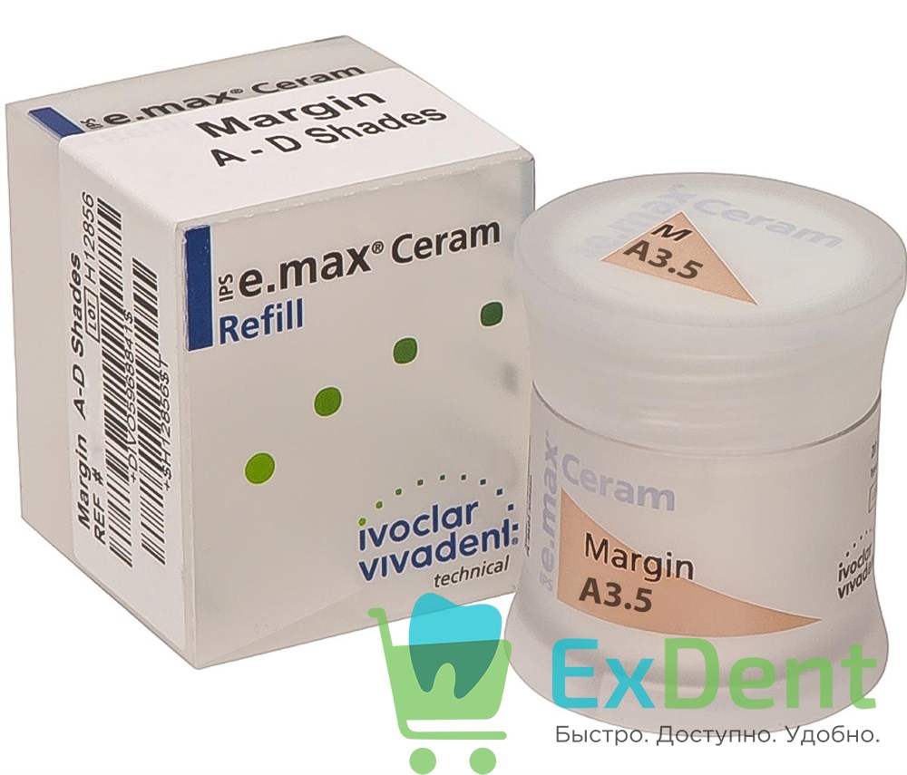 IPS e.max Ceram Margin (плечевая масса) Эти массы обладают реалистичной флюоресцентностью пришеечной области и применяются для изготовления керамического плеча на каркасах из IPS e.max ZirCAD. Благодаря отличающейся от дентиновых масс и масс режущего края в температуре обжига характеризуются отличной стабильностью при обжиге.