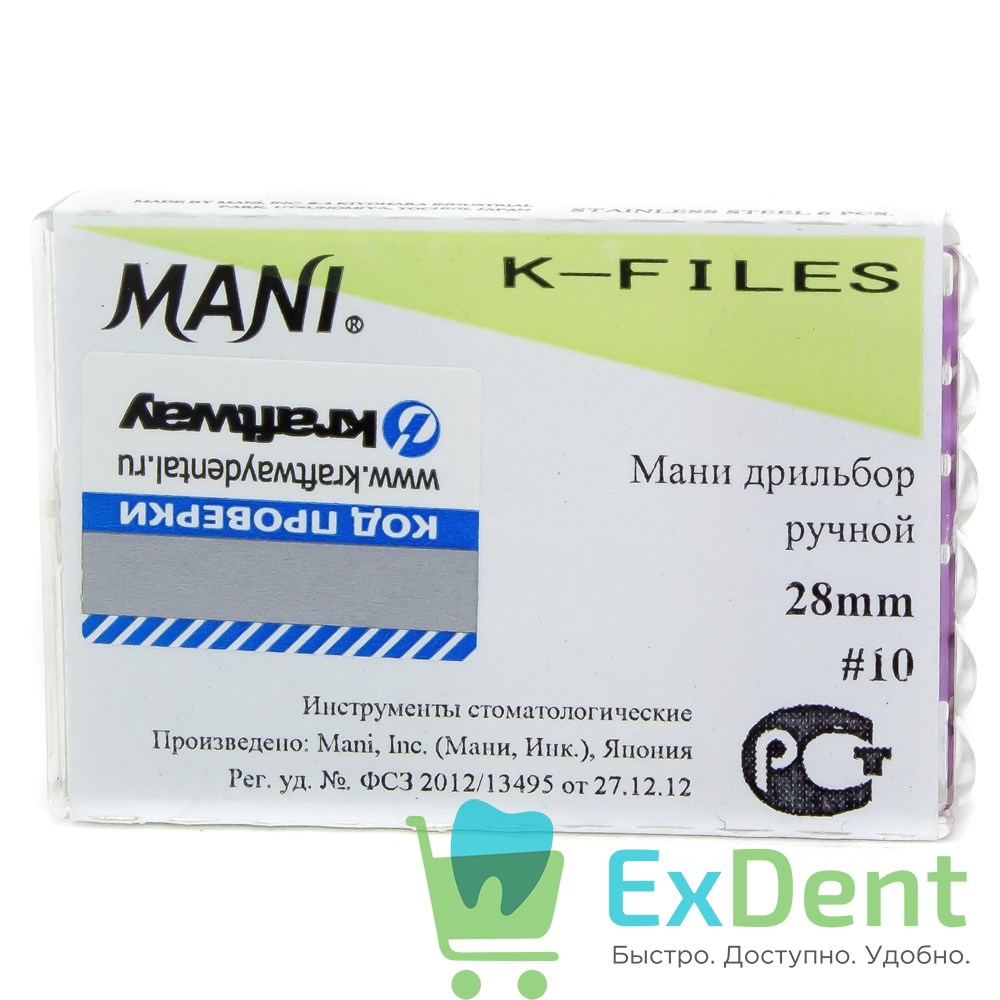 K-Files №10, 28 мм, Mani, ручной каналорасширитель (6 шт)