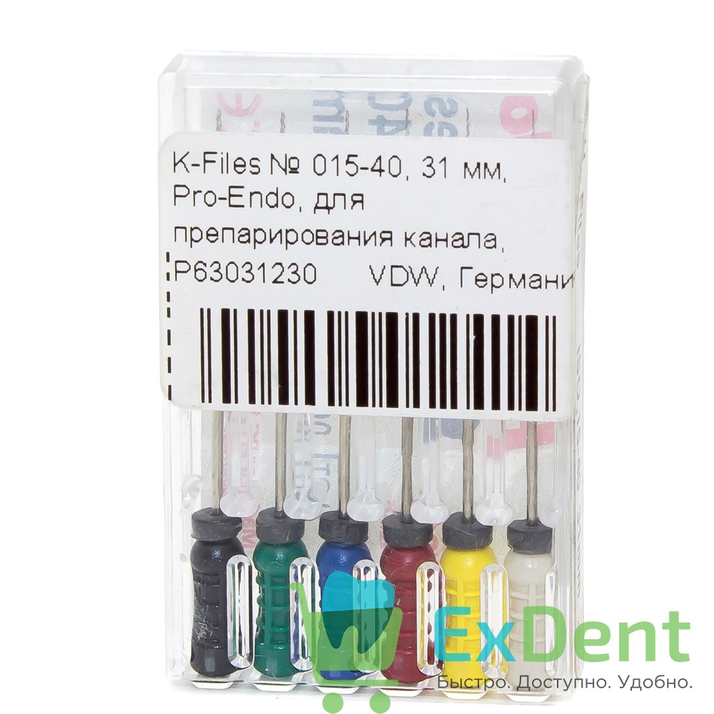 Купить K-Files №15-40, 31 мм, Pro-Endo, для препарирования канала, нержавеющая сталь (6 шт) произведенный компанией VDW вы можете в ExDent.ru по цене 270руб.