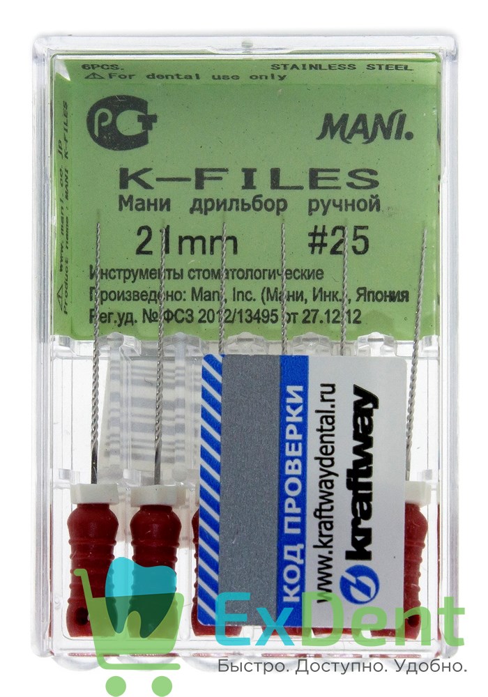 Купить K-Files №25, 21 мм, Mani, ручной каналорасширитель (6 шт) произведенный компанией Mani вы можете в ExDent.ru по цене 370руб.