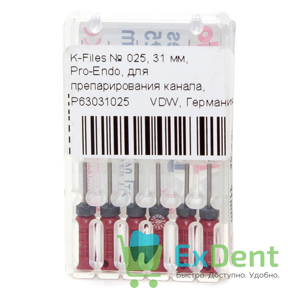 K-Files №25, 31 мм, Pro-Endo, для препарирования канала, нержавеющая сталь (6 шт)