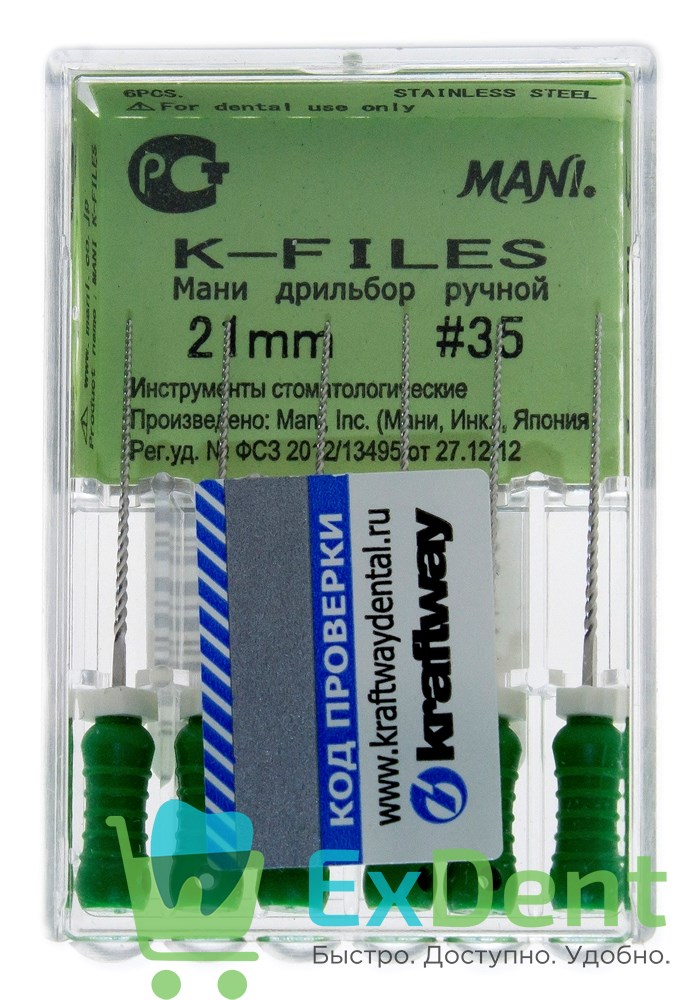 Купить K-Files №35, 21 мм, Mani, ручной каналорасширитель (6 шт) произведенный компанией Mani вы можете в ExDent.ru по цене 370руб.