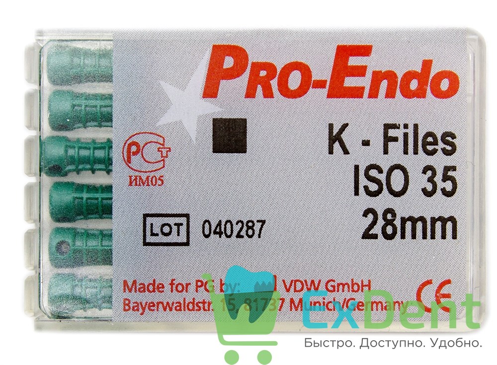 K-Files №35, 28 мм, Pro-Endo, для препарирования канала, нержавеющая сталь (6 шт)