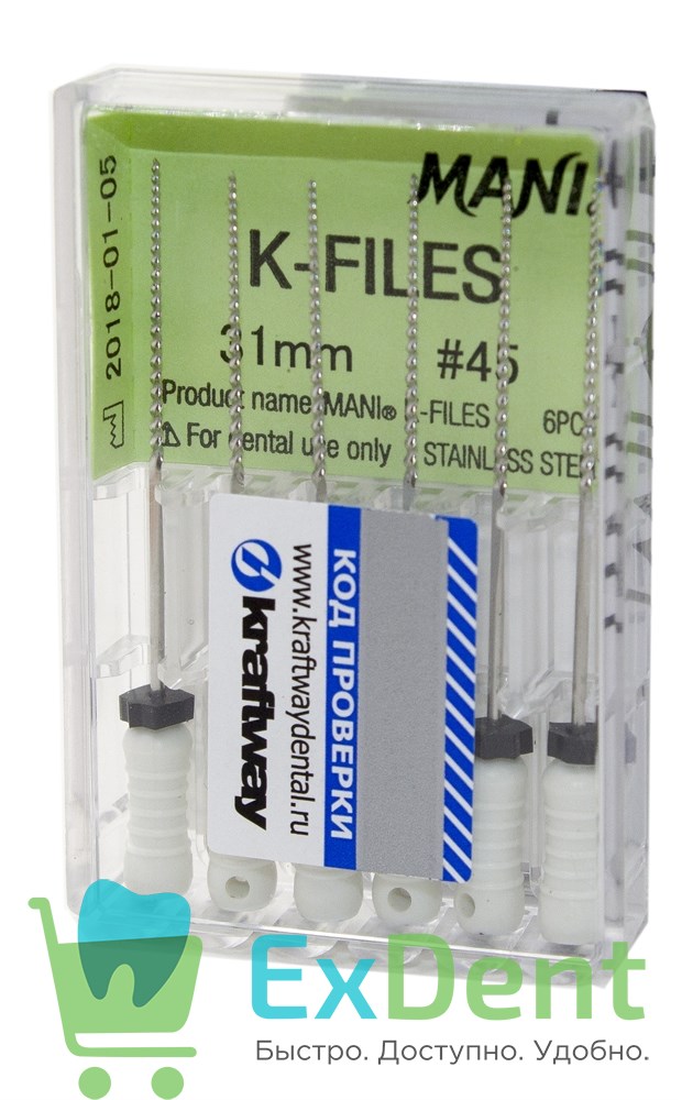 K-Files №45, 31 мм, Mani, ручной каналорасширитель (6 шт)