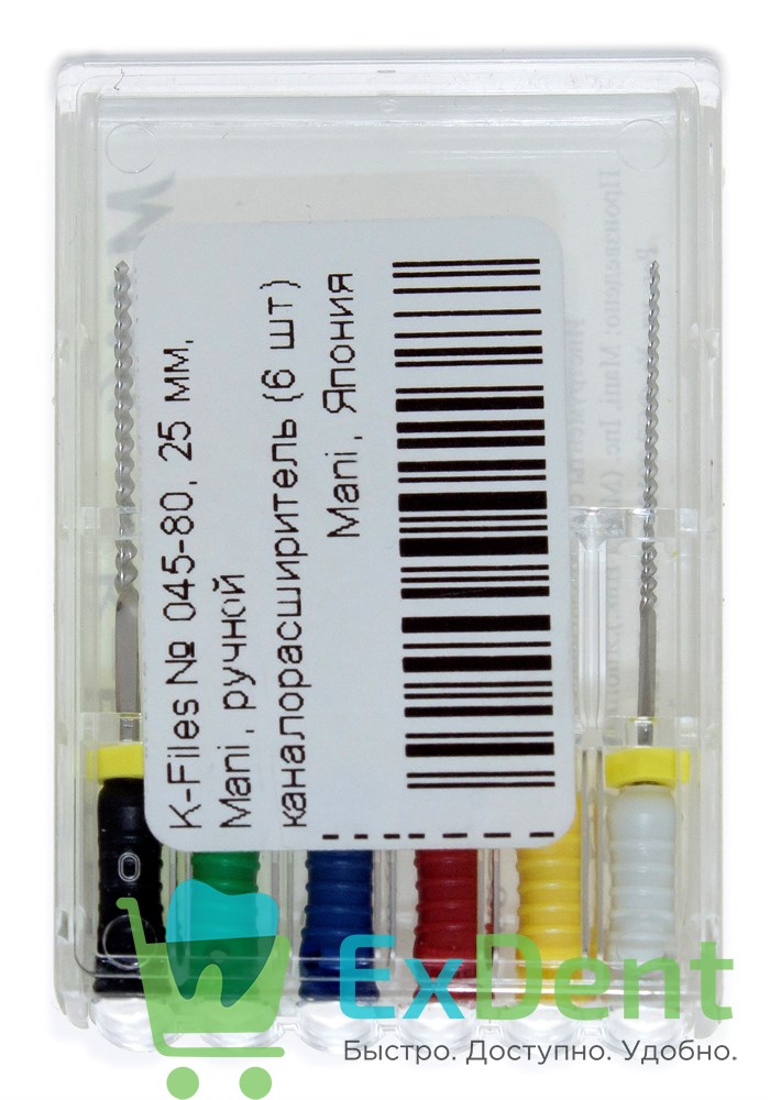 K-Files №45-80, 25 мм, Mani, ручной каналорасширитель (6 шт)