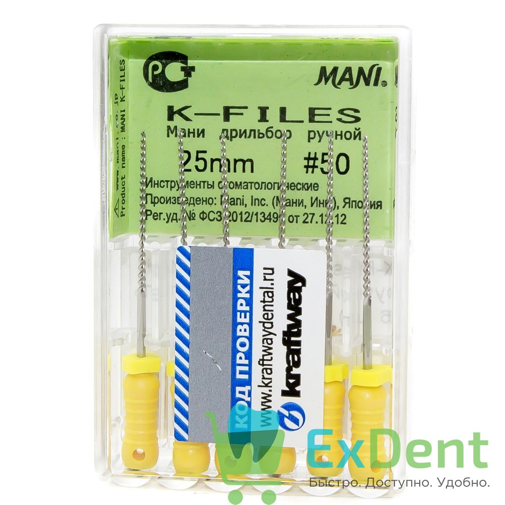 Купить K-Files №50, 25 мм, Mani, ручной каналорасширитель (6 шт) произведенный компанией Mani вы можете в ExDent.ru по цене 370руб.