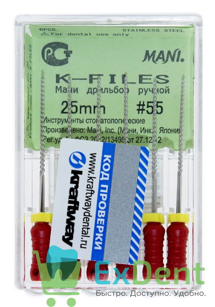 Купить K-Files №55, 25 мм, Mani, ручной каналорасширитель (6 шт) произведенный компанией Mani вы можете в ExDent.ru по цене 370руб.