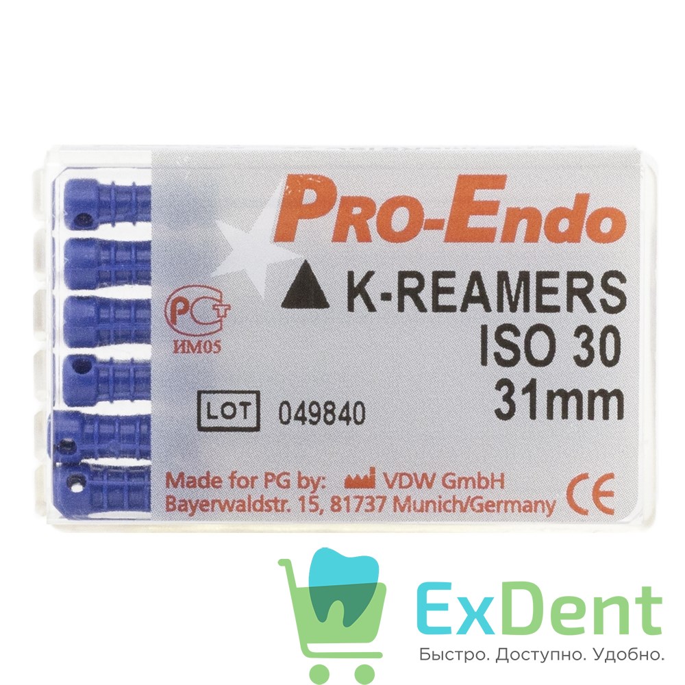 Купить K-Reamers №30, 31 мм, Pro-Endo, для препарирования канала, нержавеющая сталь (6 шт) произведенный компанией вы можете в ExDent.ru по цене 0руб.
