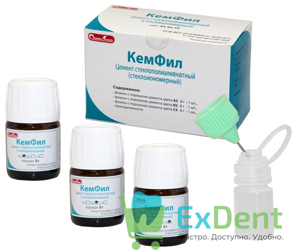 - порошок цемента «КЕМФИЛ» цветов А3; В2; С4 - 3 флакона по 8 г;