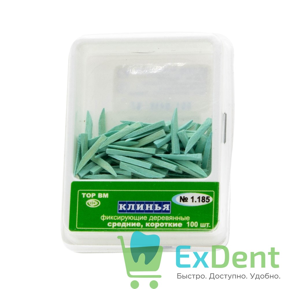 Купить Клинья фиксирующие деревянные средние, короткие, синие (100 шт) произведенный компанией ТОР ВМ вы можете в ExDent.ru по цене 0руб.