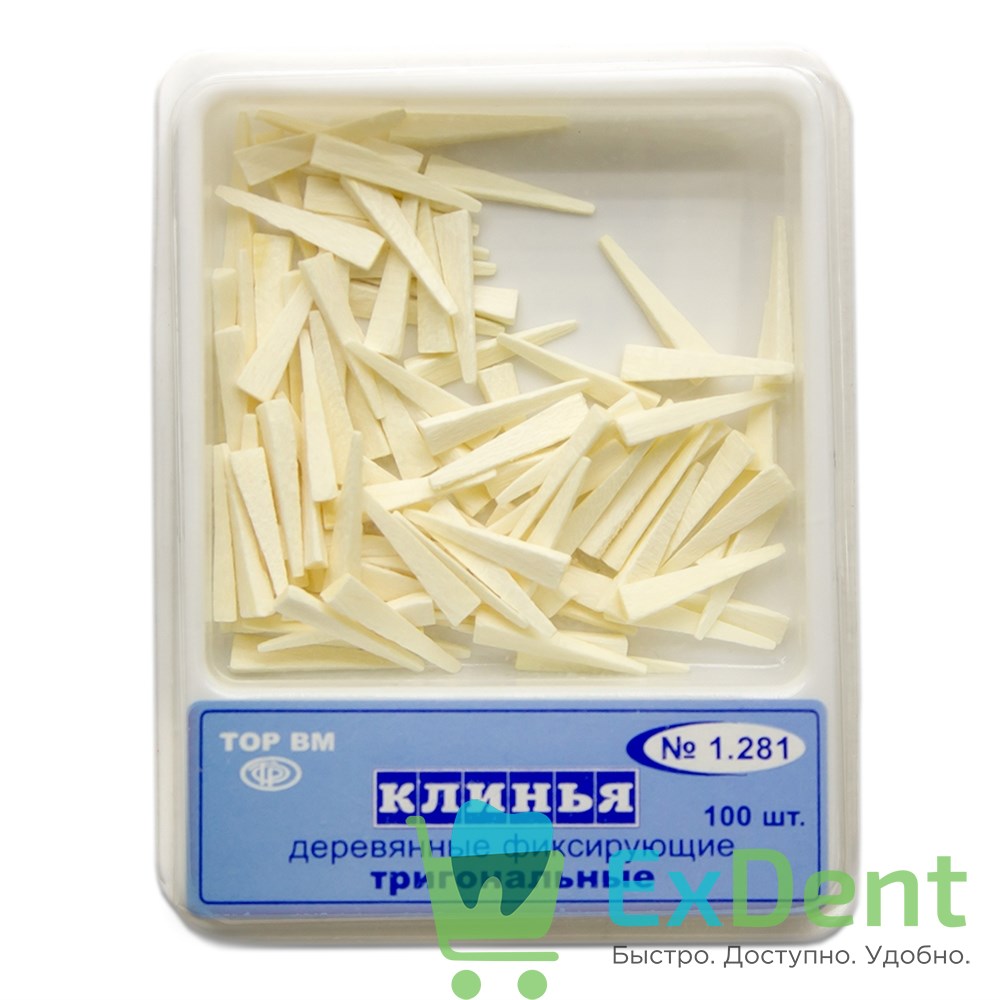 Купить Клинья фиксирующие деревянные тригональные (100 шт) произведенный компанией ТОР ВМ вы можете в ExDent.ru по цене 140руб.