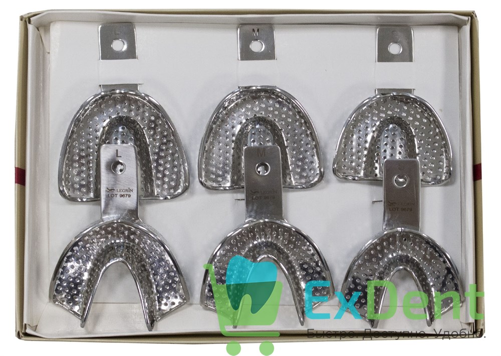 Купить Ложка для слепков перфорированная набор (3 верх+3 низ) S, M, L произведенный компанией Legrin вы можете в ExDent.ru по цене 1 340руб.