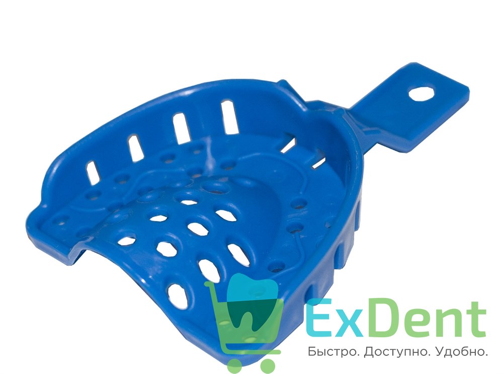 Купить Ложка для слепков, пластмассовая, перфорированная L (№3), верх синяя Россия произведенный компанией ММИЗ вы можете в ExDent.ru по цене 0руб.