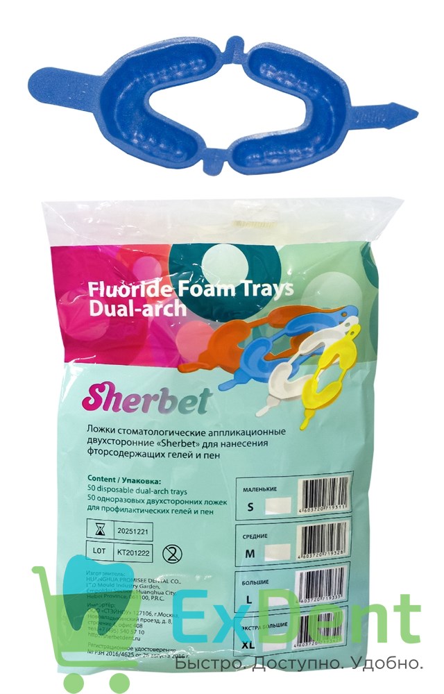 Купить Ложки для фторирования, размер L, большие, синие (50 шт) произведенный компанией Sherbet вы можете в ExDent.ru по цене 1 400руб.