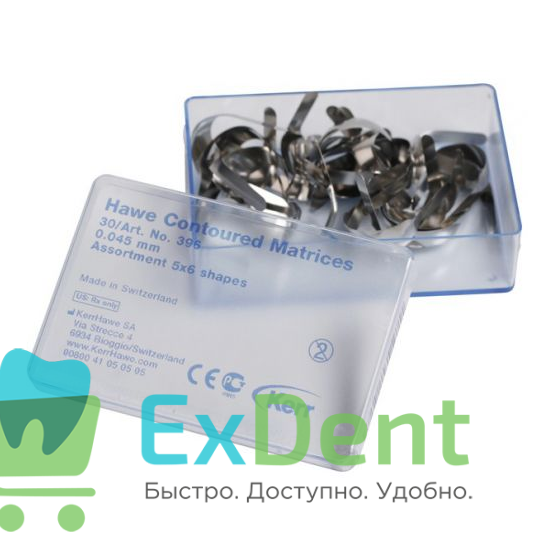 Купить Матрицы Hawe контурированные из нержавеющей стали (6 видов, толщина 0,045 мм х 30 шт) произведенный компанией Kerr вы можете в ExDent.ru по цене 1 670руб.