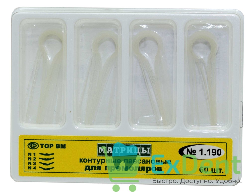 Купить Матрицы лавсановые контурные для премоляров 4-х форм (60 шт) произведенный компанией ТОР ВМ вы можете в ExDent.ru по цене 0руб.