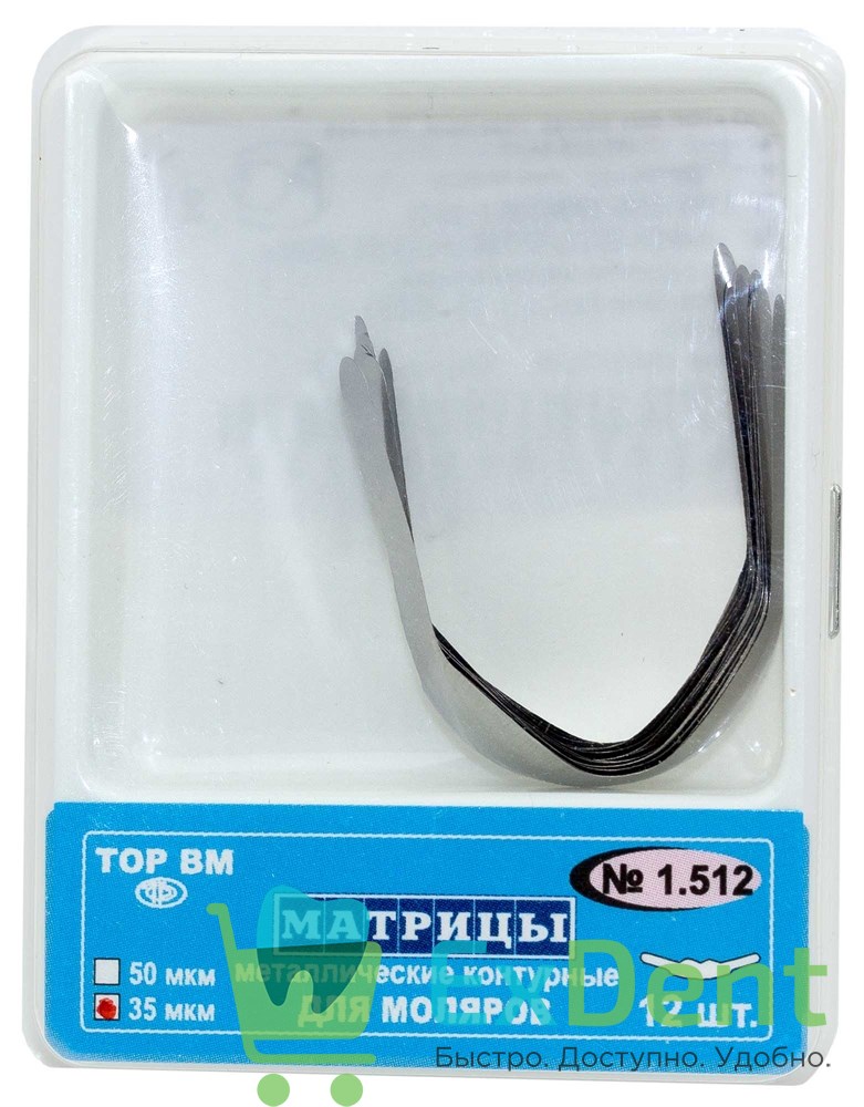 Купить Матрицы метал. контурные для моляров, билатеральные (35мкм х 12 шт) произведенный компанией ТОР ВМ вы можете в ExDent.ru по цене 0руб.