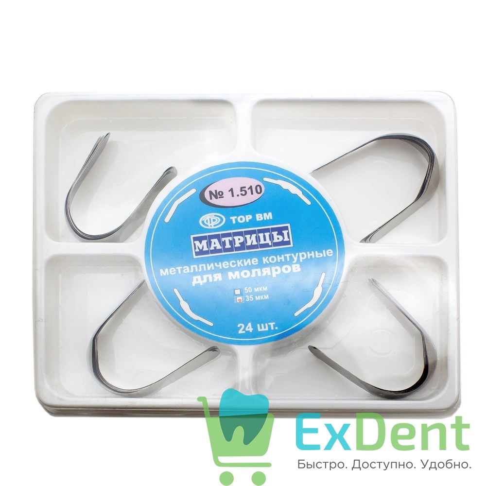 Купить Матрицы металлические контурные для моляров, набор 5 форм, (35 мкм х 30 шт) произведенный компанией вы можете в ExDent.ru по цене 0руб.
