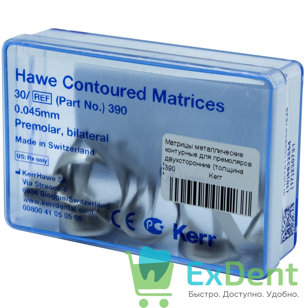 Купить Матрицы металлические контурные для премоляров двухсторонние (толщина 0,045 мм х 30 шт) произведенный компанией Kerr вы можете в ExDent.ru по цене 0руб.