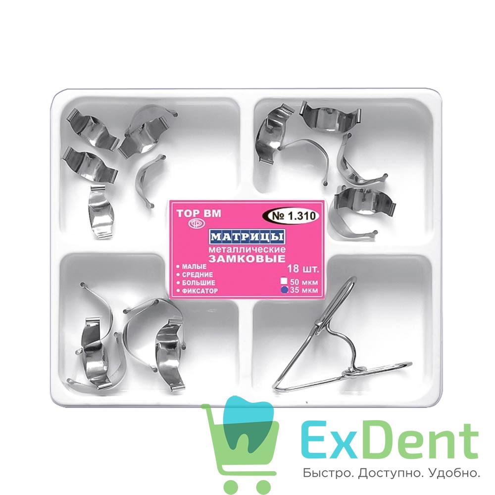 Купить Матрицы металлические контурные замковые, набор 3 вида + фиксатор (35 мкм х 18 шт) произведенный компанией ТОР ВМ вы можете в ExDent.ru по цене 540руб.