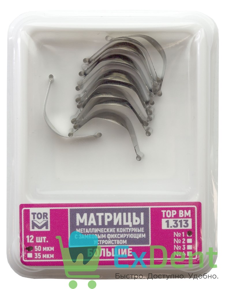 Купить Матрицы металлические контурные замковые с фиксирующим устройством, большие ф.1 (50 мкм х 12 шт) произведенный компанией вы можете в ExDent.ru по цене 0руб.