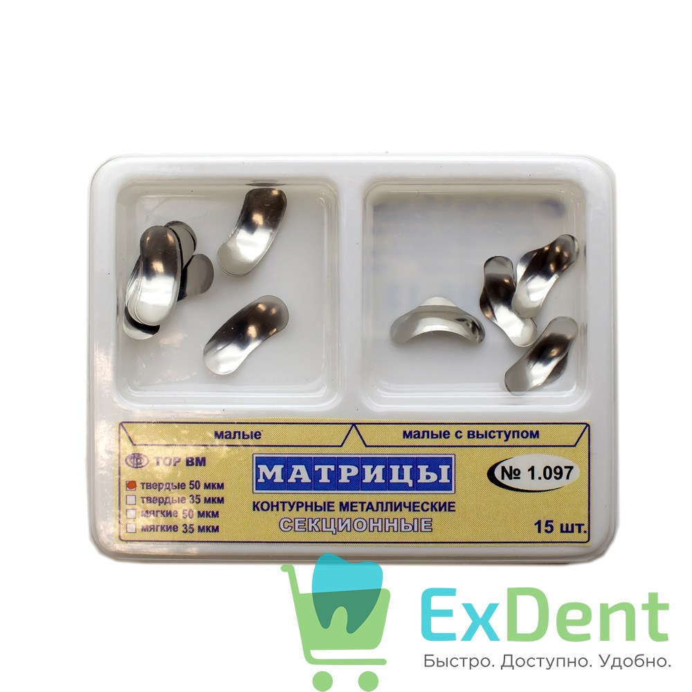 Купить Матрицы металлические секционные, набор 2 вида, твердые (50 мкм х 15 шт) произведенный компанией ТОР ВМ вы можете в ExDent.ru по цене 185руб.