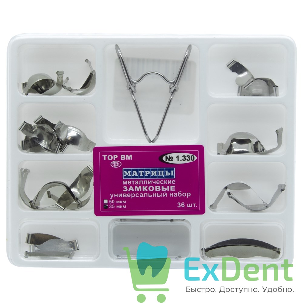 Купить Матрицы металлические замковые универсальный набор (35 мкм х 36 шт) произведенный компанией ТОР ВМ вы можете в ExDent.ru по цене 0руб.