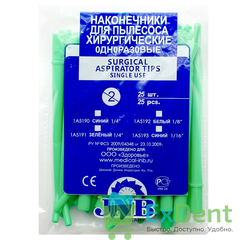 Купить Наконечники для пылесосов 1/4 хирургические одноразовые зеленые (25 шт) произведенный компанией JNB вы можете в ExDent.ru по цене 340руб.