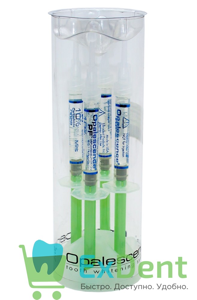 Купить Opalescence (Опалисенс) PF 10% система домашнего отбеливания (4 х 1,2 мл) произведенный компанией Ultradent вы можете в ExDent.ru по цене 3 290руб.