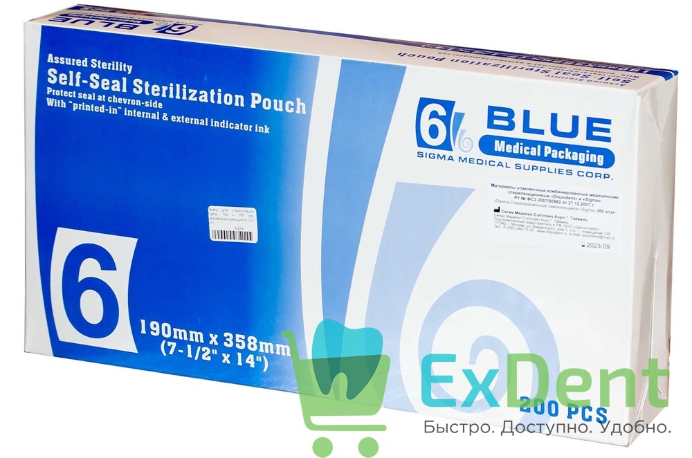 Пакеты для стерилизации Sigma, 190 х 358 мм, самозапечатывающиеся (200 шт)