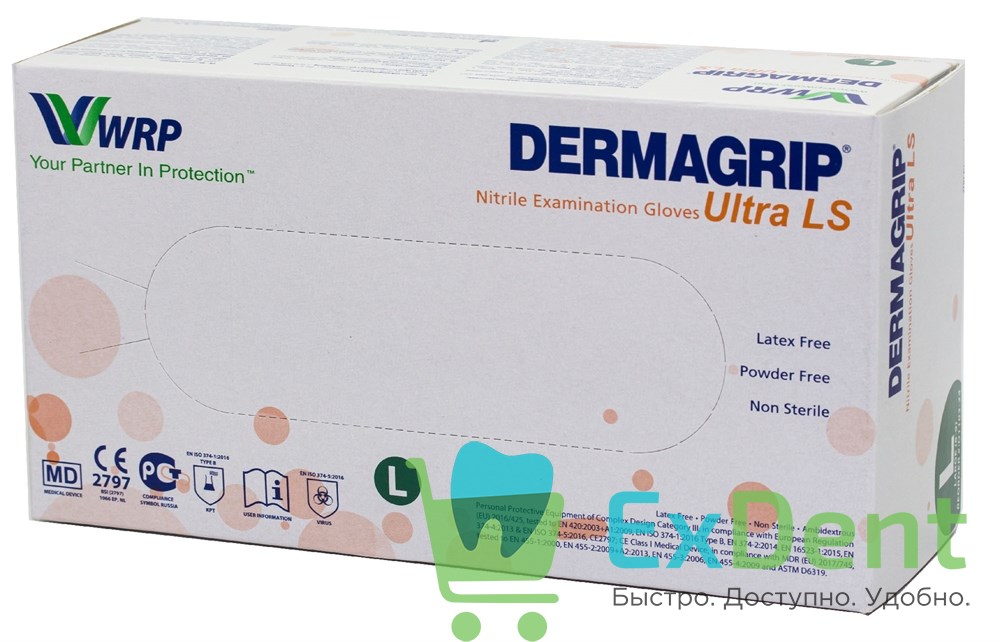 Медицинские перчатки Dermagrip Nitrile Ultra LS торговой марки WRP (Малайзия) - это нитриловые неопудренные нестерильные перчатки с текстурированной поверхностью пальцев. Не содержат протеины натурального латекса. Перчатки Дермагрип Ультра ЛС стойкие к антисептикам, гипоаллергенные, обеспечивают высокую тактильную чувствительность и отличную барьерную защиту от химикатов и различных жидкостей.