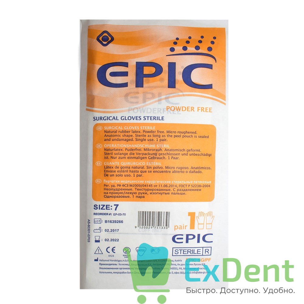 Купить Перчатки Epic (7 - S / M) - хирургические стерильные латексные неопудренные (1 пара) произведенный компанией вы можете в ExDent.ru по цене 0руб.