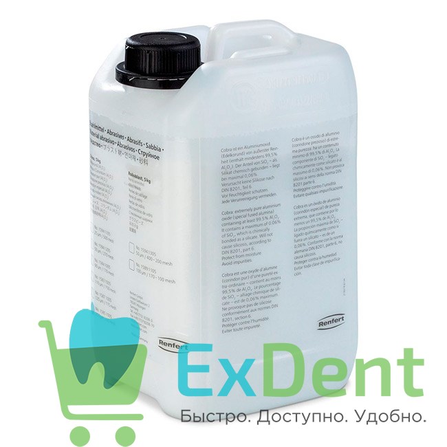 Песок Renfert Cobra (Кобра) представляет собой струйный материал, который состоит из одного из самых твердых материалов: оксида алюминия (Al2O3).