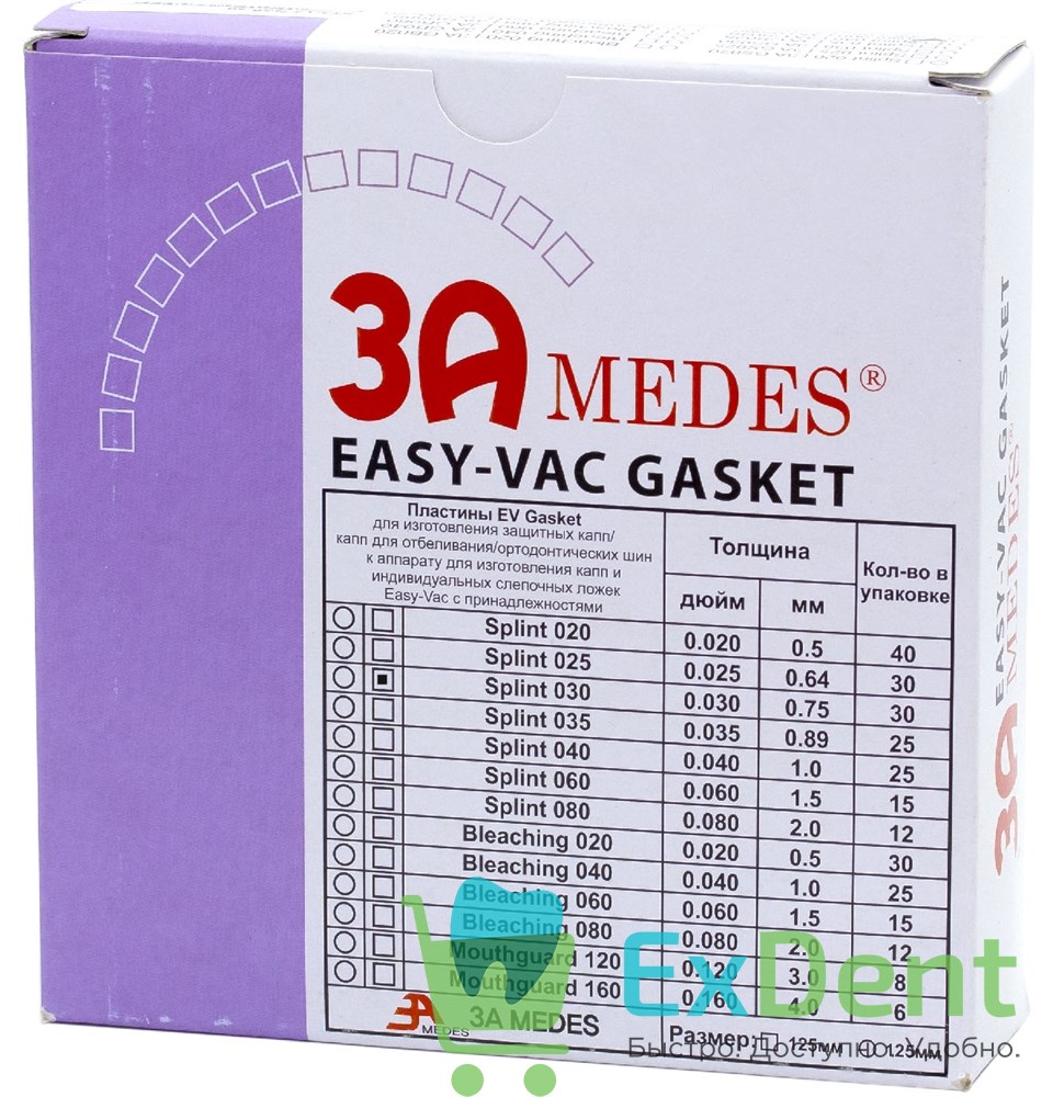 Пластины EV Gasket Splint - 0.75 квадратные для изготовления ортодонтических шин, 127 мм (30 шт)