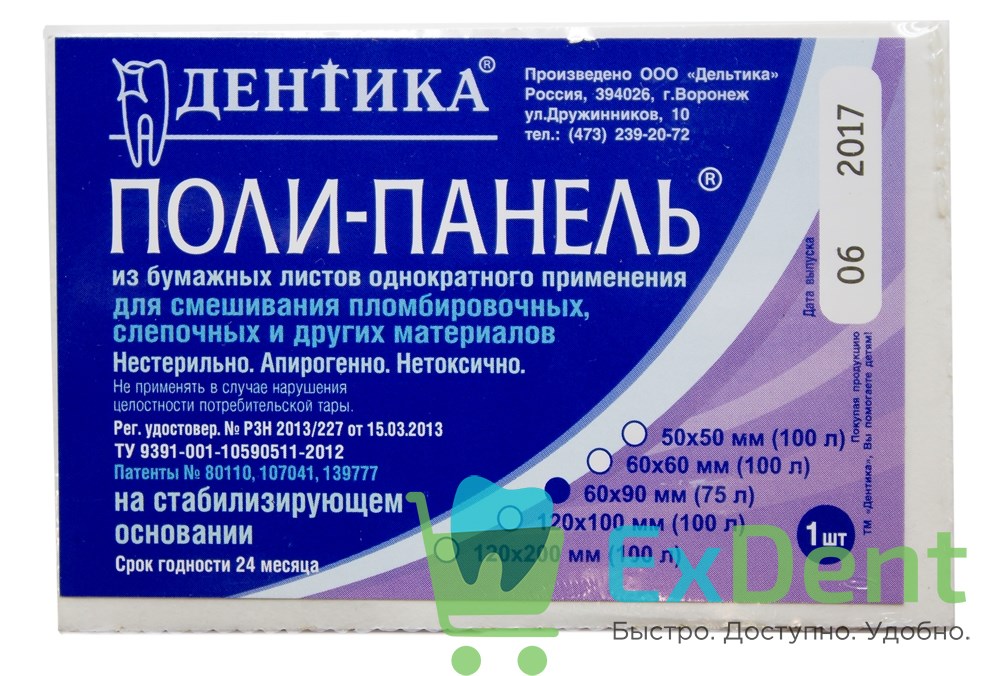 Купить Поли-панель (60 х 90 мм) - блокнот для замешивания (75 листов) произведенный компанией Дентика вы можете в ExDent.ru по цене 90руб.