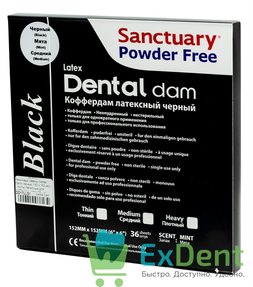 Купить Резиновые завесы Dental Dams черные, средние 0,20 мм (152 х 152 мм) - латексные, мята (36 шт) произведенный компанией Dental Dam вы можете в ExDent.ru по цене 640руб.