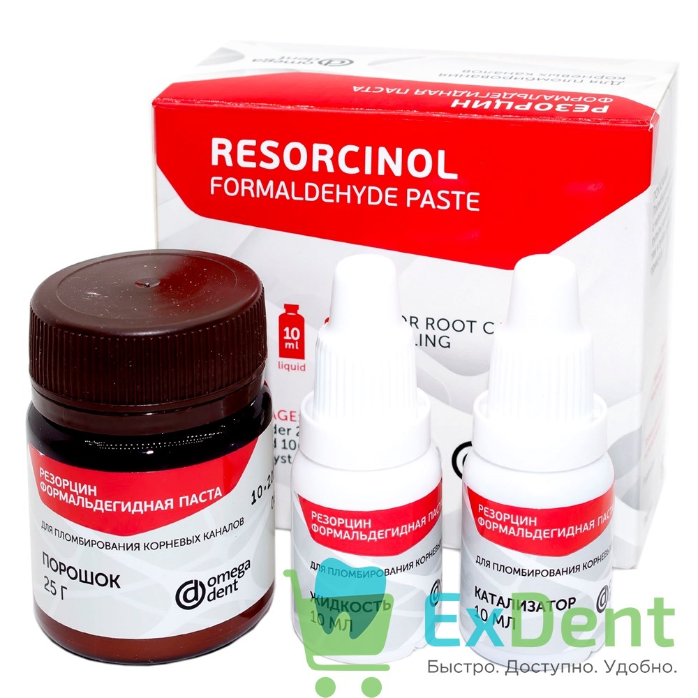 Купить Резорцин формальдегидная паста - для пломбирования корневых каналов (25 г + 10 мл + 10 мл) произведенный компанией ОМЕГА-ДЕНТ вы можете в ExDent.ru по цене 1 040руб.