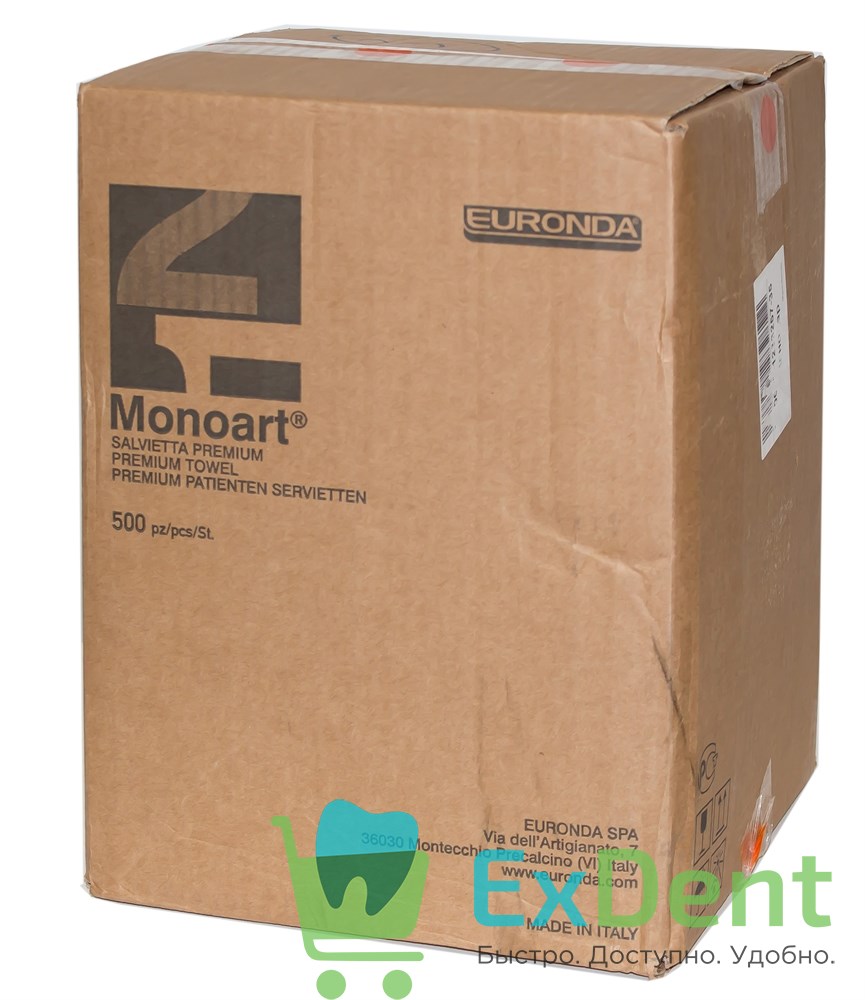 Салфетки стоматологические нагрудные Euronda Monoart Premium 3-х слойные. Выполнены из чистейшей высоковпитывающей целлюлозы, соединенной со слоем непромокаемого прочного и тонкого полиэтилена. Многократно закрывающаяся упаковка позволяет оператору извлекать салфетки по одной и защищает от пыли и возможных заражений, обеспечивая максимальную гигиену и высокую практичность использования.