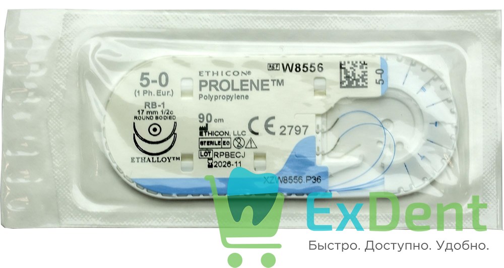 Купить Шовный материал Prolene (Пролен) 5-0, 90 см с иглой 17 мм 1/2c произведенный компанией ETHICON вы можете в ExDent.ru по цене 0руб.