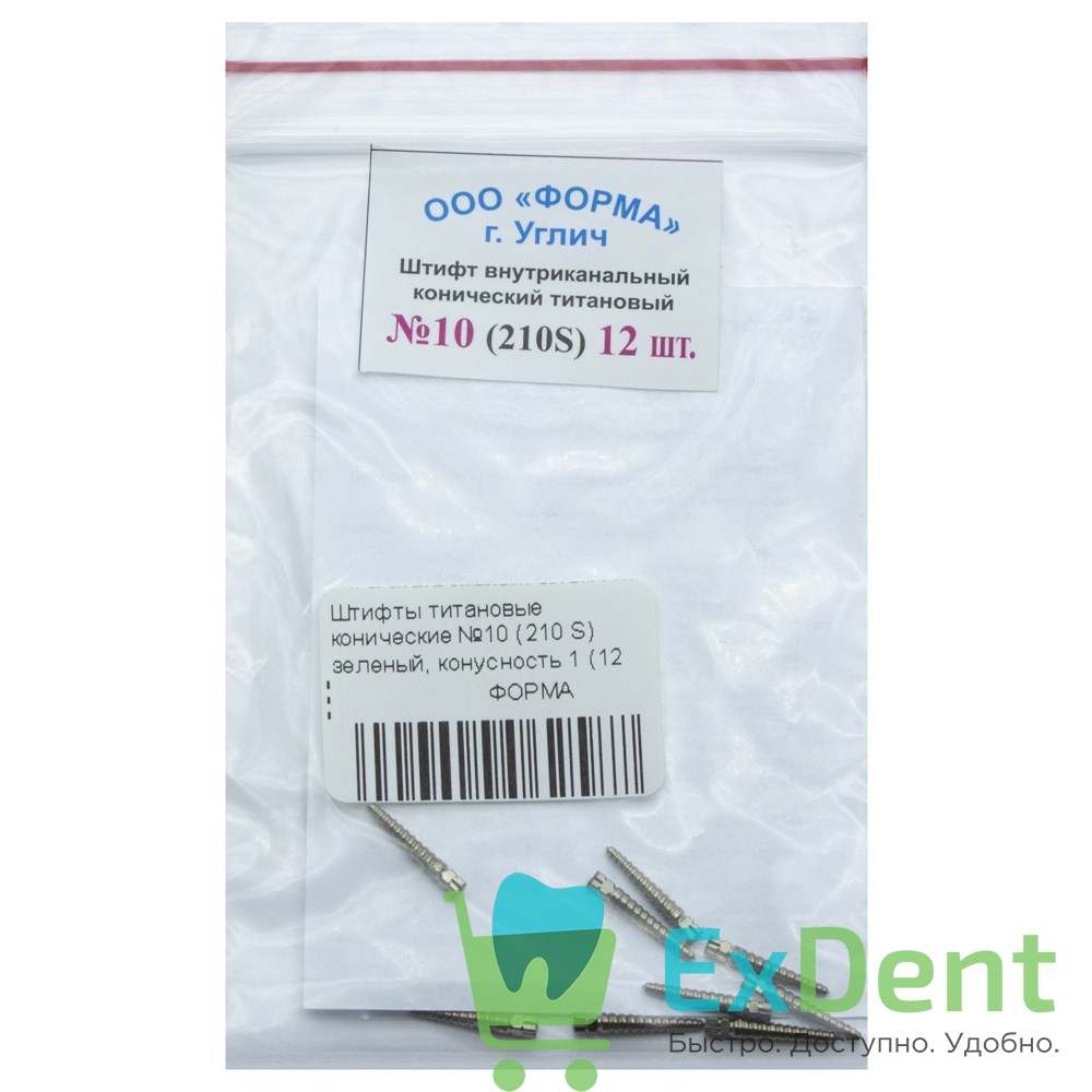 Купить Штифты титановые конические №10 (210 S) зеленый, конусность 1 (12 шт) произведенный компанией ФОРМА вы можете в ExDent.ru по цене 0руб.