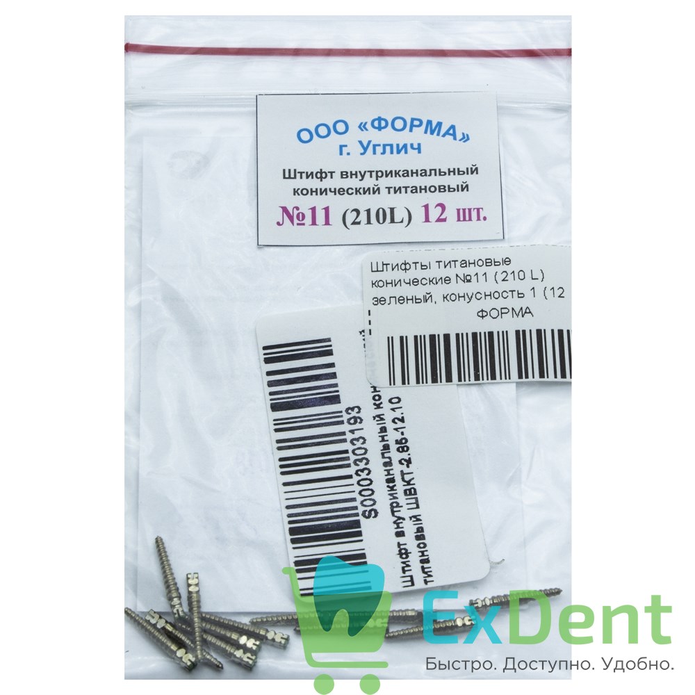 Купить Штифты титановые конические №11 (210 L) зеленый, конусность 1 (12 шт) произведенный компанией ФОРМА вы можете в ExDent.ru по цене 0руб.