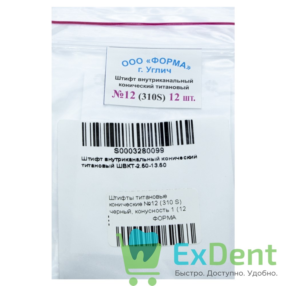 Купить Штифты титановые конические №12 (310 S) черный, конусность 1 (12 шт) произведенный компанией ФОРМА вы можете в ExDent.ru по цене 0руб.