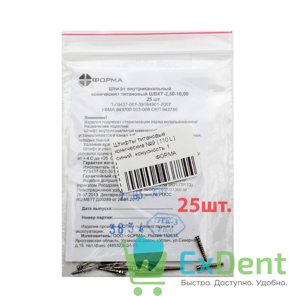 Купить Штифты титановые конические №9 (110 L) синий, конусность 1 (25 шт) произведенный компанией ФОРМА вы можете в ExDent.ru по цене 0руб.