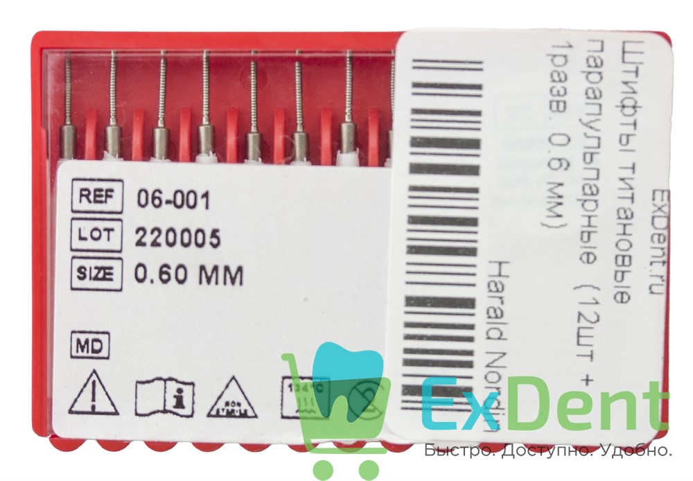Купить Штифты титановые парапульпарные (12шт + 1разв. 0.6 мм) произведенный компанией Harald Nordin вы можете в ExDent.ru по цене 0руб.