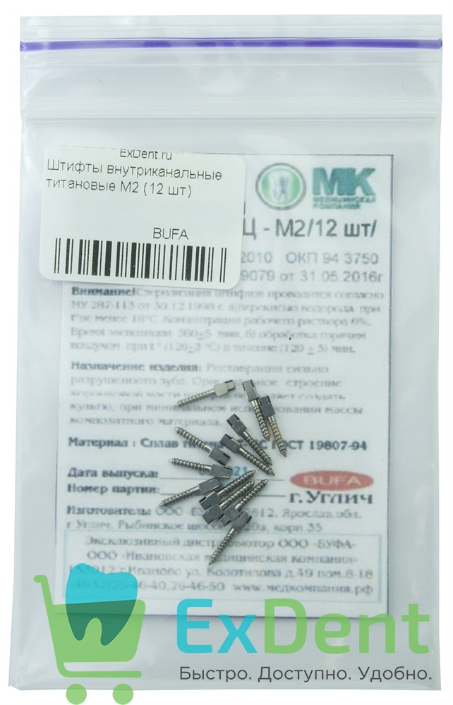 Купить Штифты внутриканальные титановые M2 (12 шт) произведенный компанией BUFA вы можете в ExDent.ru по цене 245руб.
